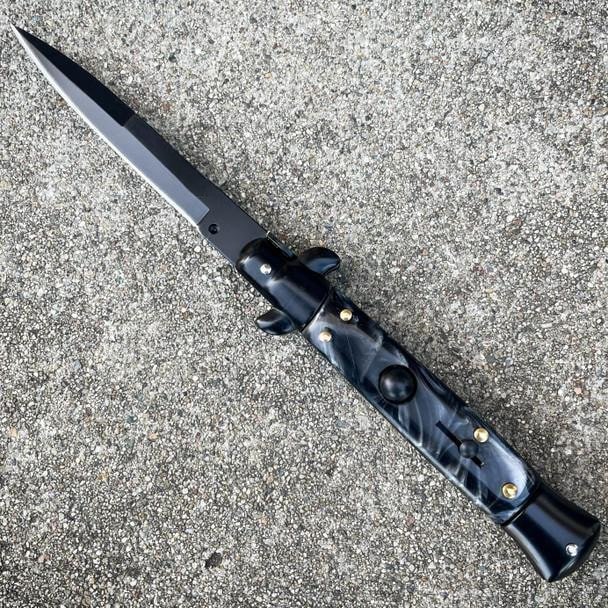 8,75 Zoll schwarzes italienisches Stiletto-Taschenmesser mit Schalter, schwarze Perle
