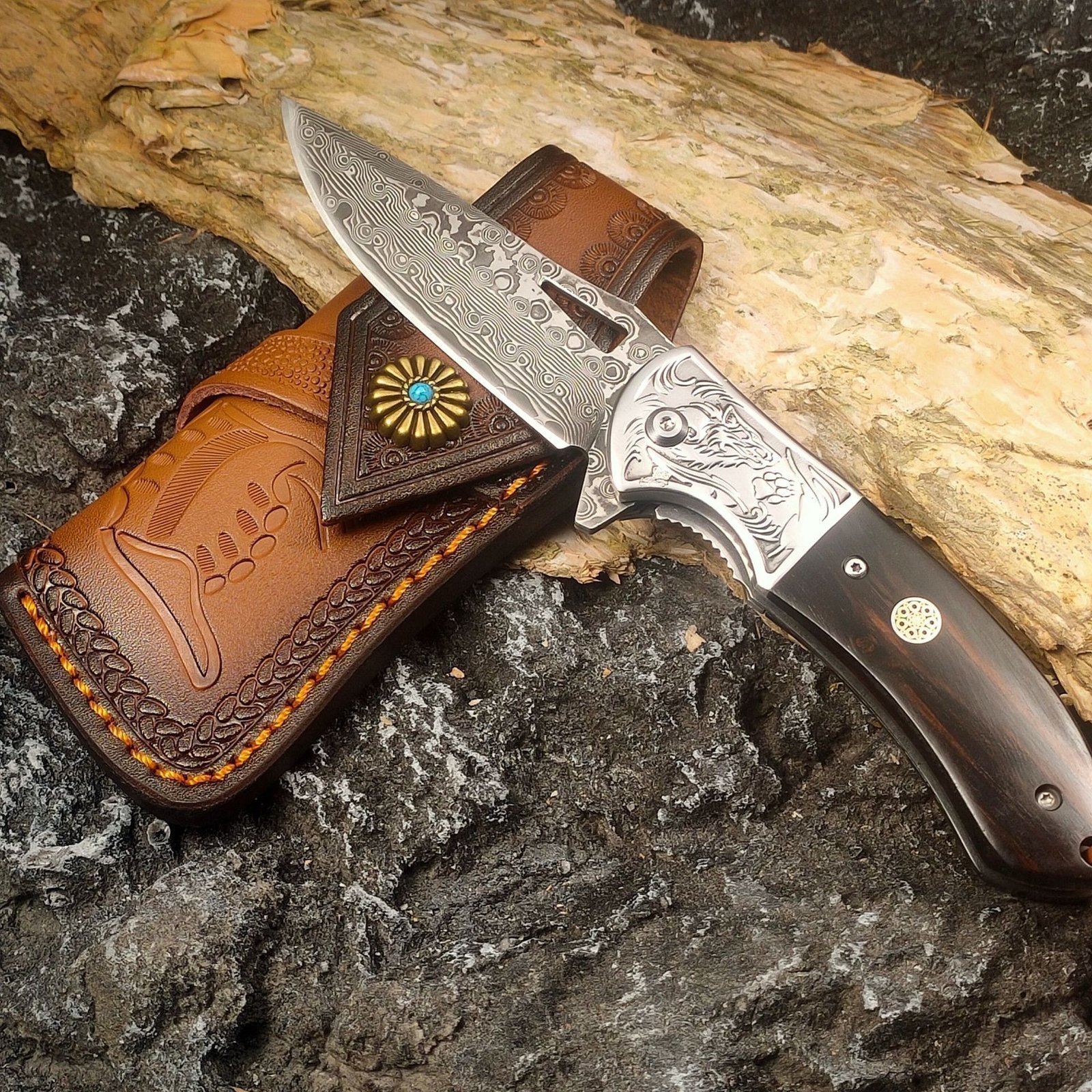 ? Premium Damascus Steel Blade ?C Hand-forged with multiple layers for exceptional strength, sharpness, and durability.