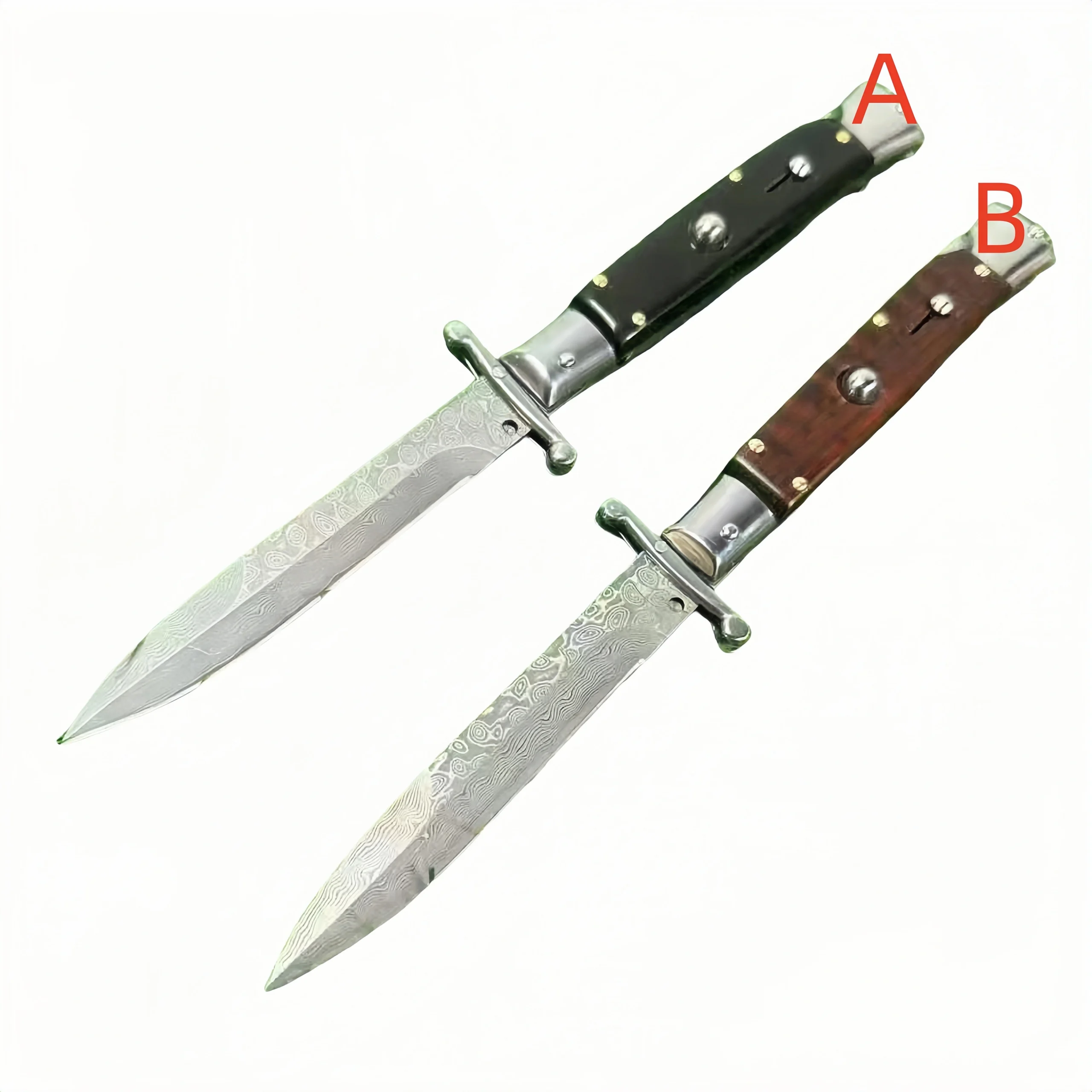 9 Zoll Automesser Italienisches Stiletto-Stil OTF-Messer Damascus Etch