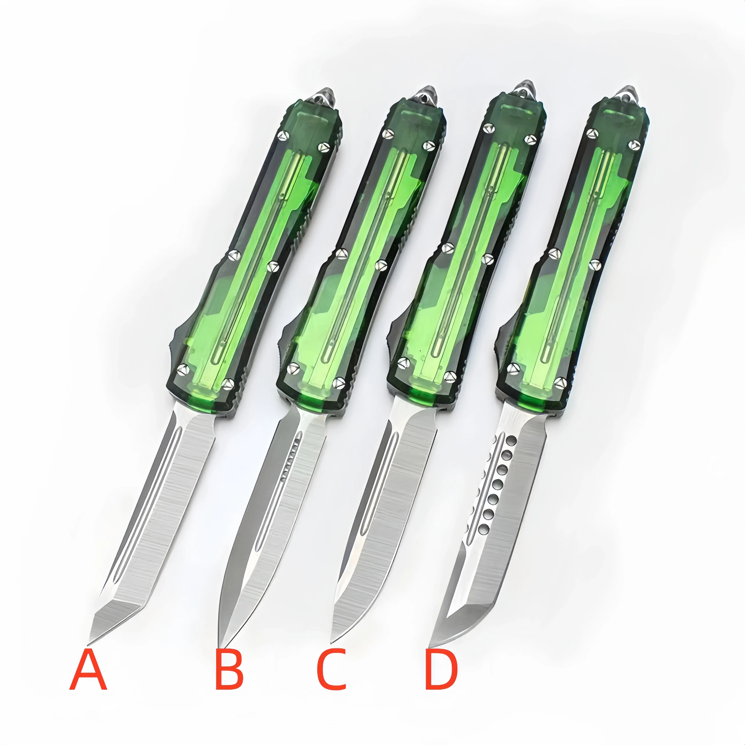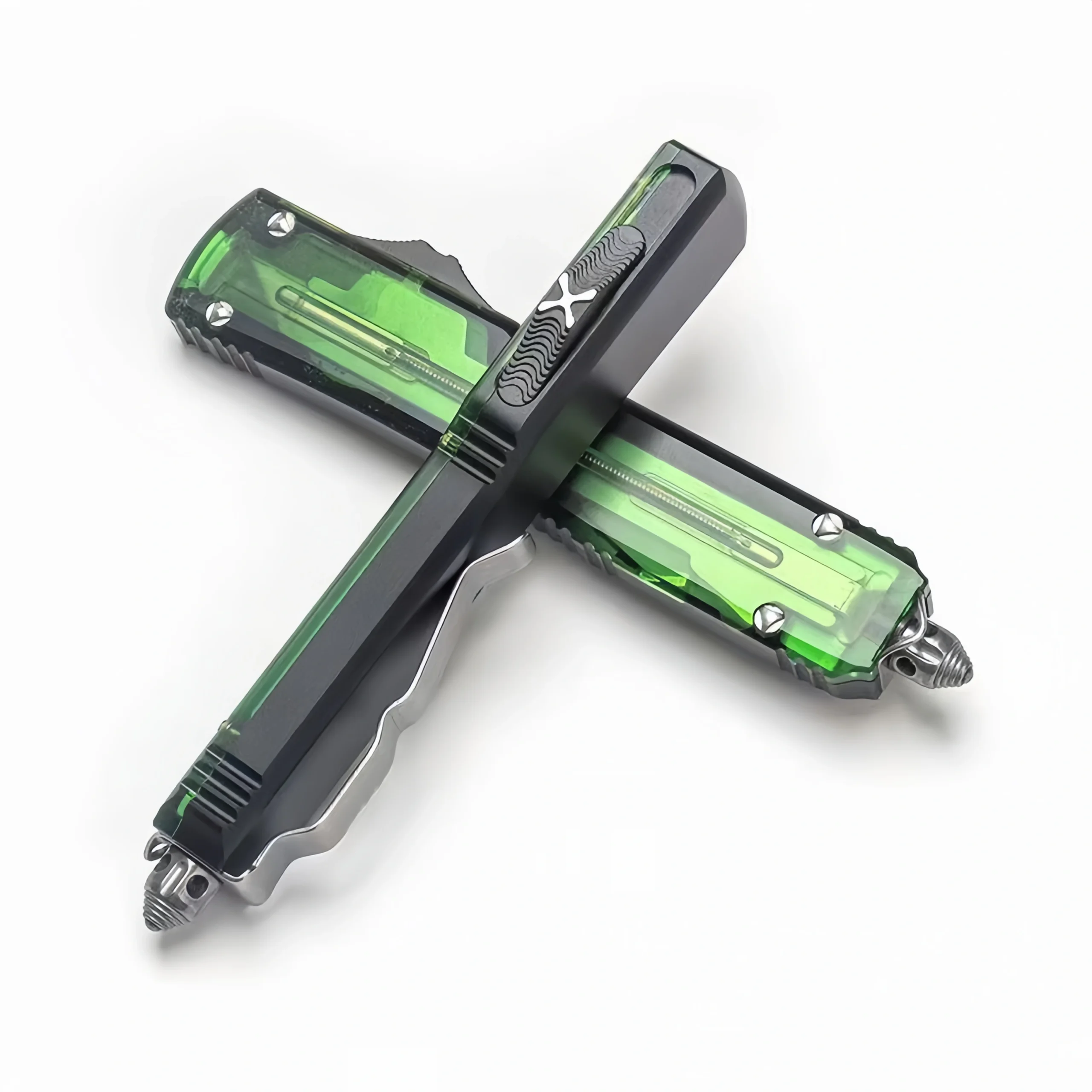 Green translucent handle OTF knife