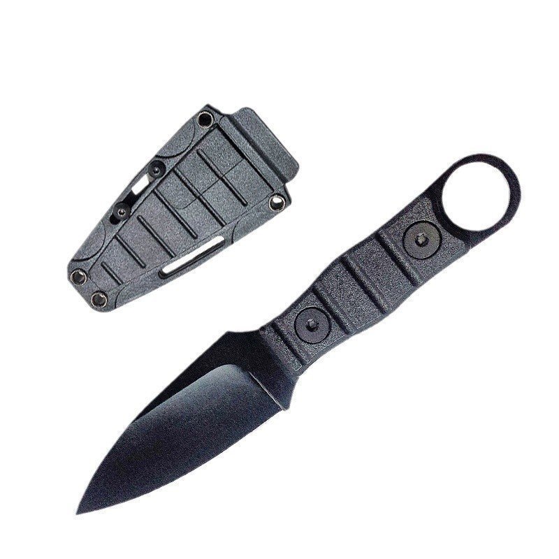 Outdoor-Stahlmesser mit hoher Hrte und Schrfe Taktisches kleines Stabmesser mit K-Scheide A-1 schwarz/schwarzer Griff,Jagdmesser